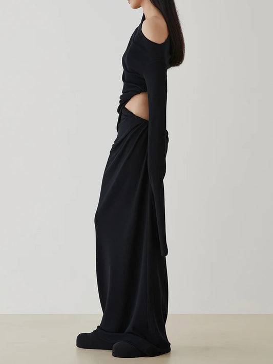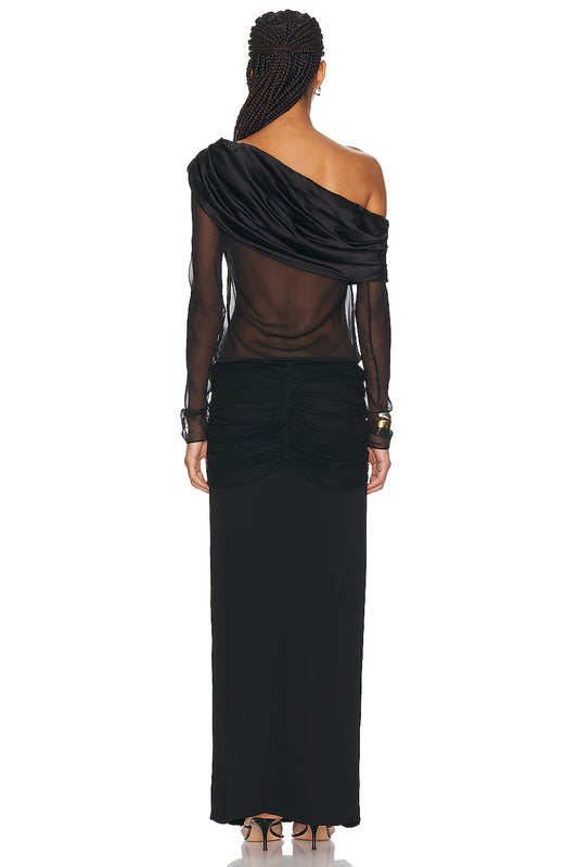 BACKLESS MESH MAXI DRESS WITH HIGH SLIT